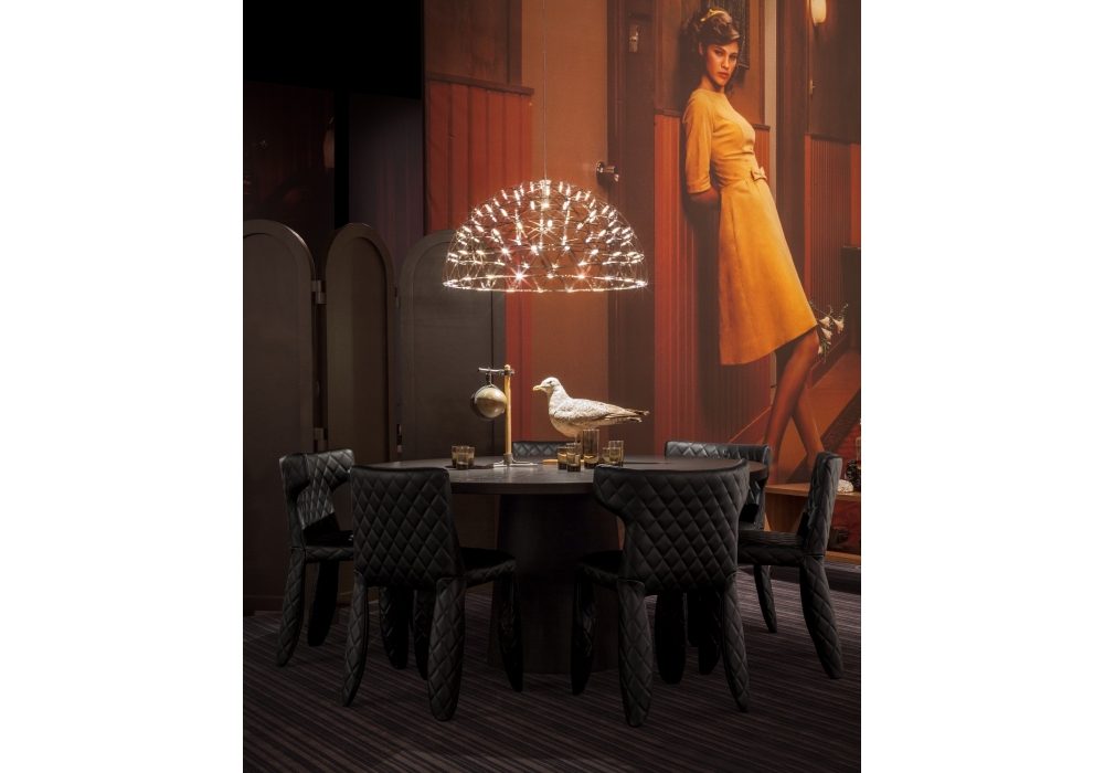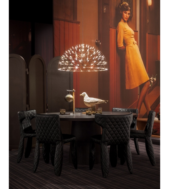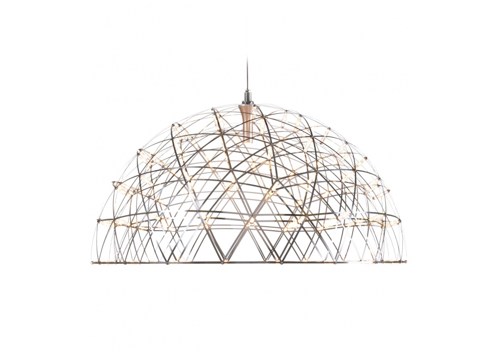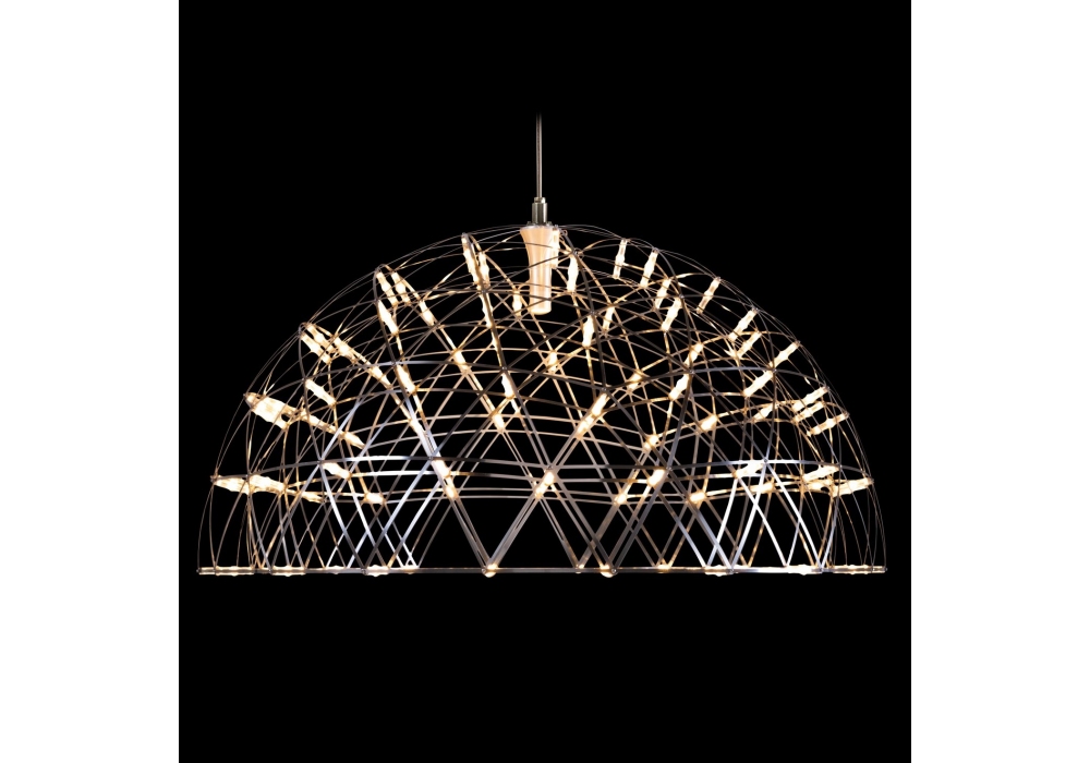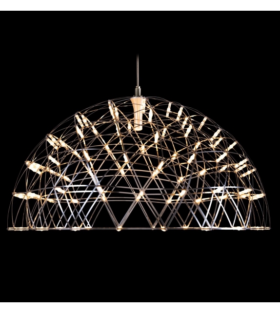 Raimond II Dome conçue par Raimond Puts pour Moooi est une lampe à suspension dimmable avec diffuseur en acier inoxydable avec lentilles en PMMA.