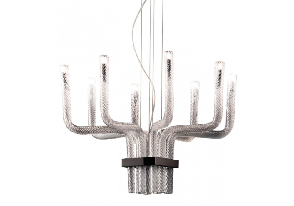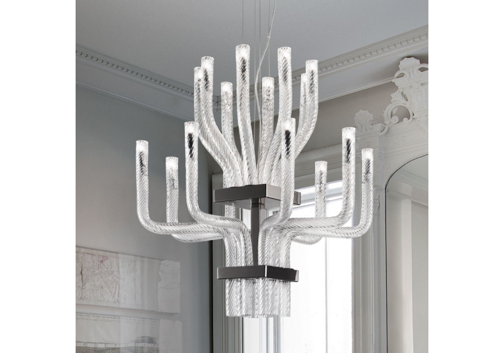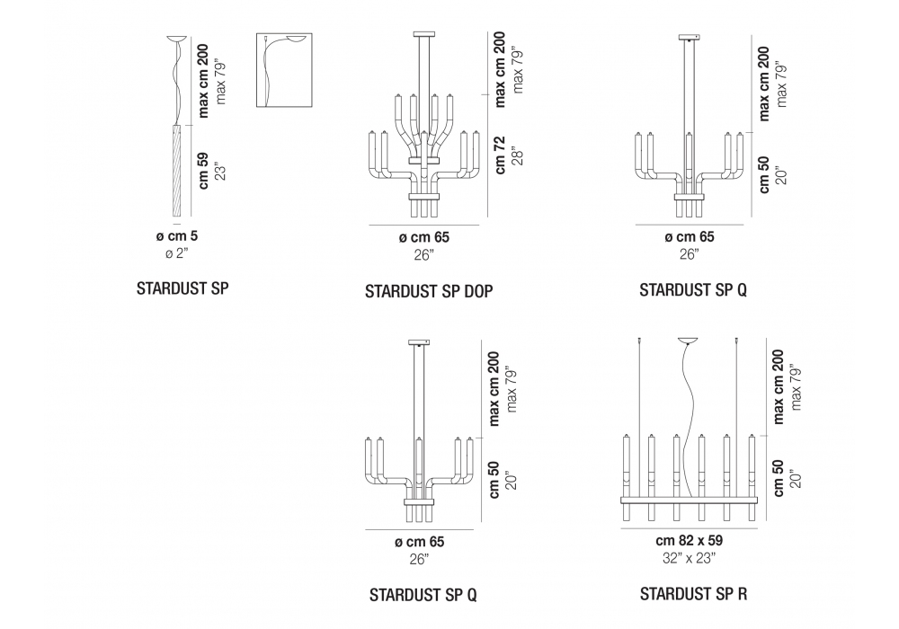 Stardust conçue par Francesco Lucchese pour Vistosi est une lampe à suspension avec structure portante en métal couleur nickel noir. Les diffuseurs sont en verre tubulaire avec une surface rayée en finition cristal rigadin et adoptent une source lumineuse LED ou halogène dimmable avec connexion G9. Stardust est disponible en différents modèles.