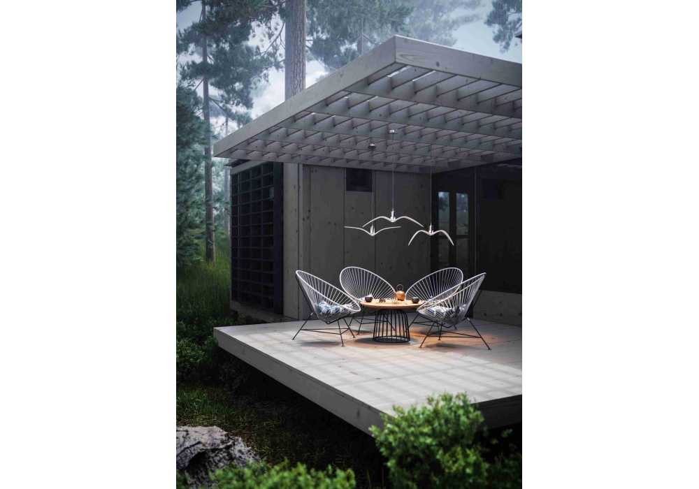 Night Birds Exterior conçue par Boris Klimek pour Brokis est une lampe à suspension d'extérieur avec structure de support cylindrique en métal anodisé. Le corps d'éclairage est en verre et adopte une source lumineuse LED dimmable avec certification IP 54. Night Birds Exterior est disponible en différents modèles et finitions.