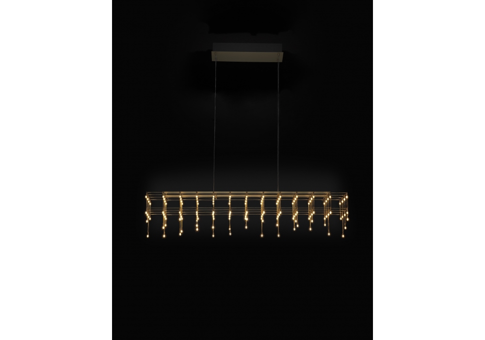 Universe Square with Drops conçue par Jan Pauwels pour Quasar est une lampe à suspension avec rosace noire et couvercle assortis à la structure. Le corps de lampe quadrangulaire est structuré par une série de tiges tubulaires peintes ancrées les unes aux autres. Les sources lumineuses fixées à la structure porteuse sont de type LED. Universe Square with Drops est disponible en différents modèles et finitions.