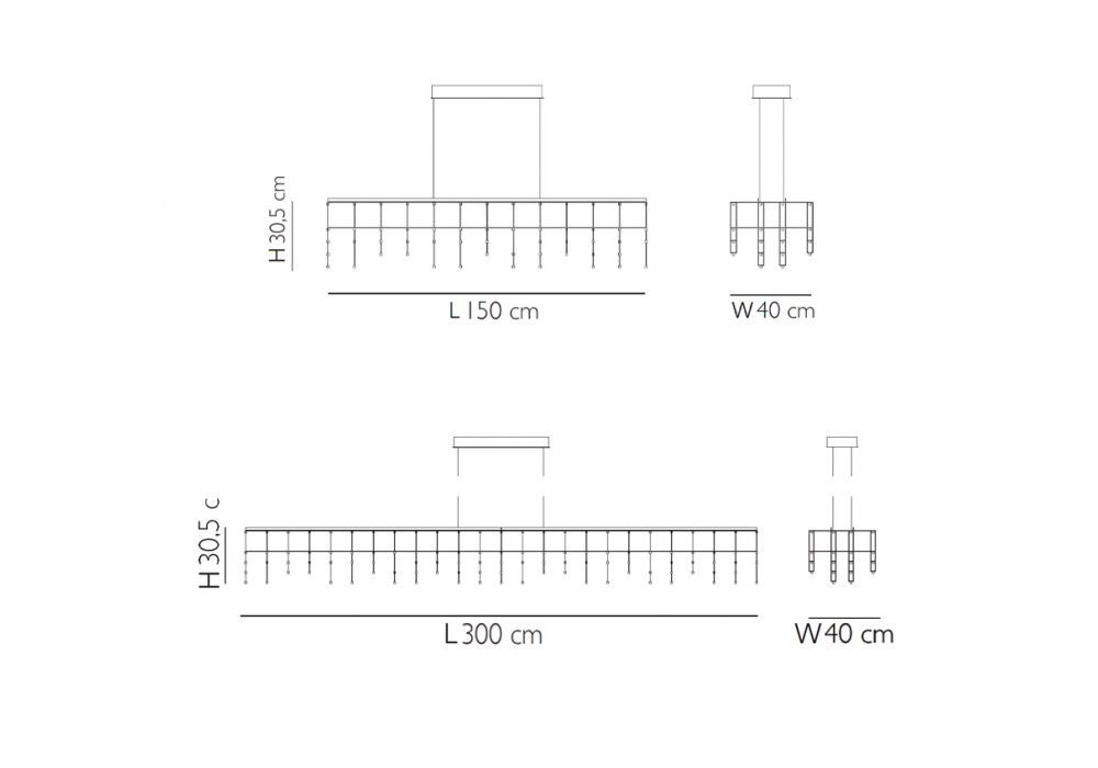| Dimensions | L 150 x W 40 x H 30,5 cm; L 300 x W 40 x H 30,5 cm; |