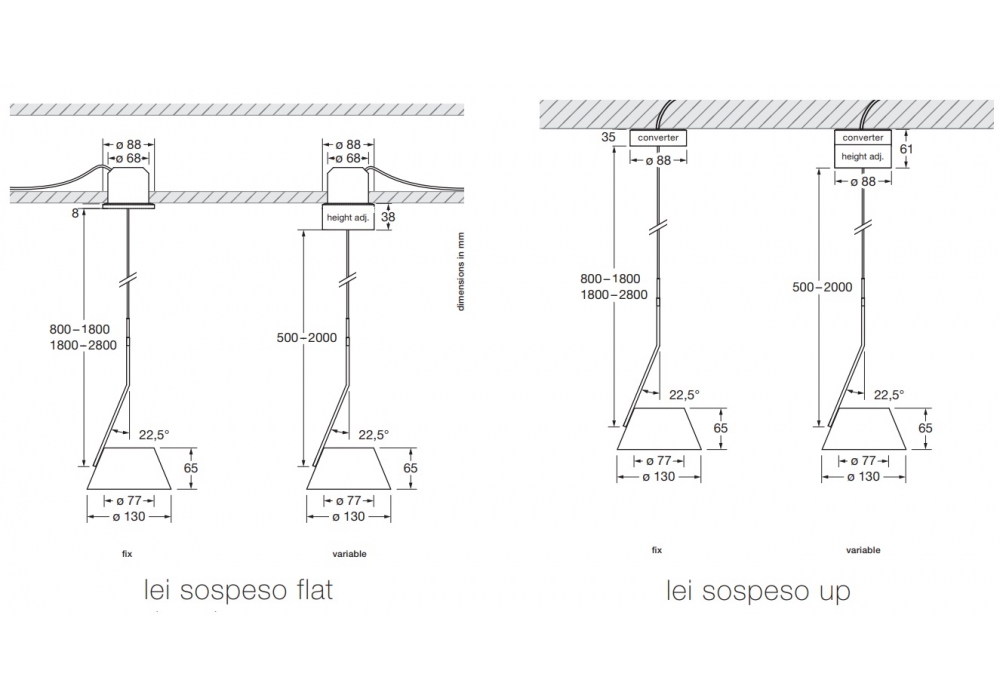 Lei Sospeso conçue par Occhio est une suspension LED à intensité variable, réglable en hauteur ou fixe. Fabriqué en aluminium, acier chromé, peint ou anodisé, plastique, verre, acier inoxydable et plastique optique. Rosace plate pour montage sur caisson enterré ou haut avec alimentation électrique incluse. Disponible en différentes finitions.