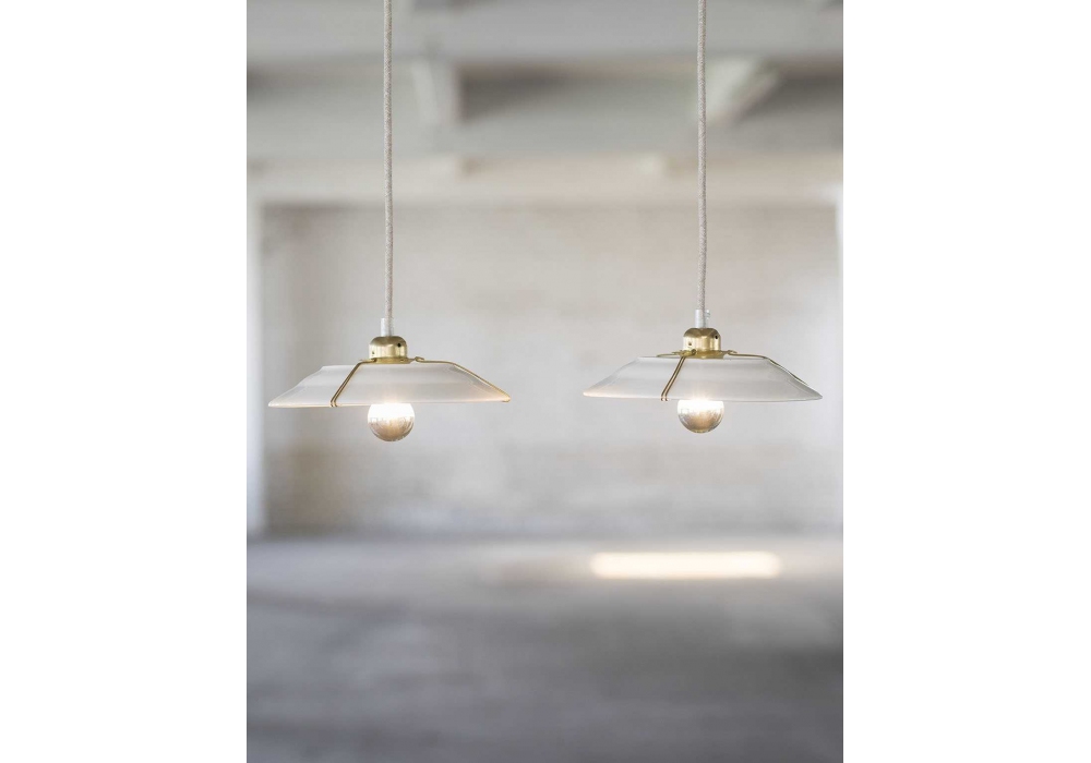 Switch Lamp conçue par Klijn & Klijn pour Serax est une lampe à suspension, avec câble de suspension en matériau textile structure portante en laiton et diffuseur en grès cérame blanc. La source lumineuse adopte est LED ou halogène (non inclus), avec couplage E27.
