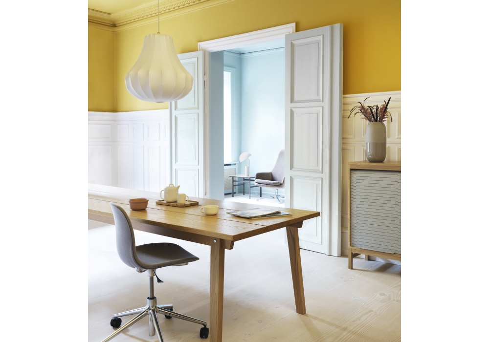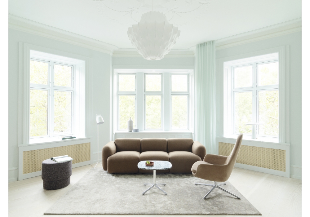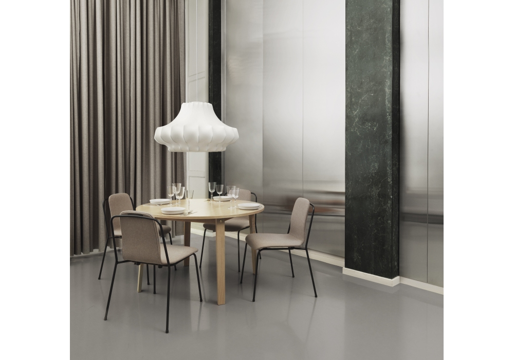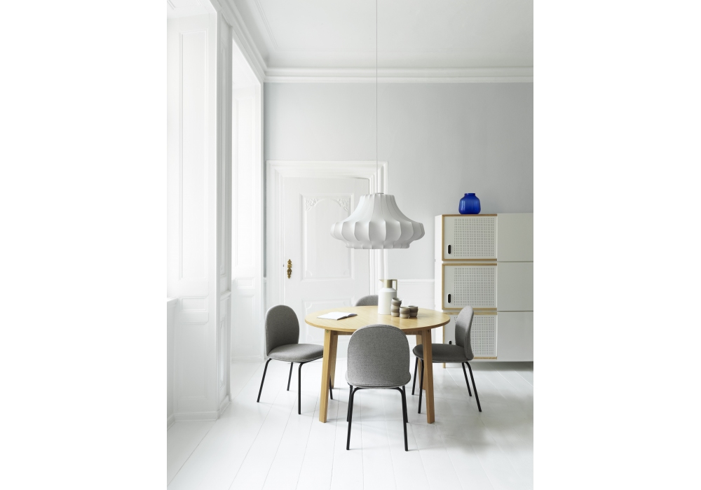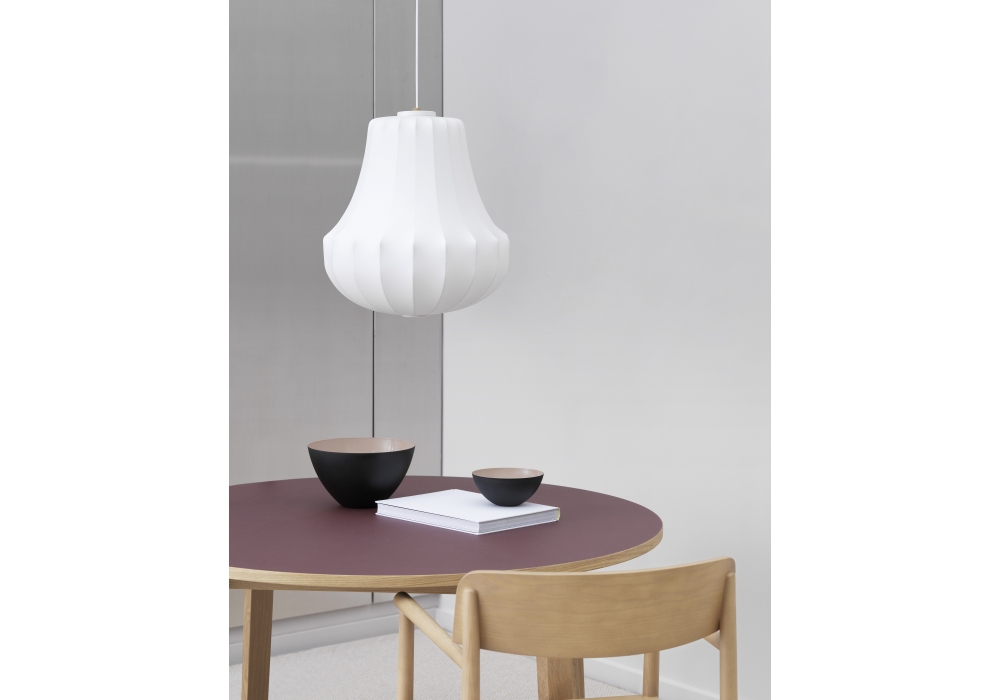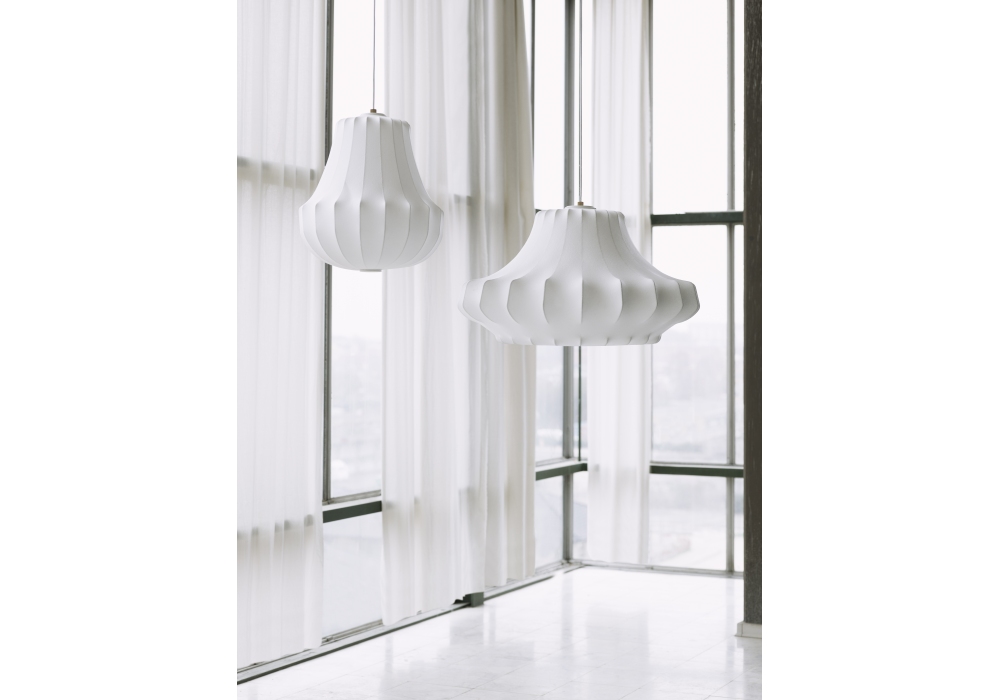 Phantom, conçue par Simon Legald pour Normann Copenhagen est une lampe à suspension, avec structure portante en acier. L'abat-jour est blanc, composé de nombreux filaments de résine, et adopte une source lumineuse halogène ou LED (non fournie), alimentée par un câble recouvert de fibre textile de la même couleur que la lampe. Phantom est disponible en trois tailles différentes et en version EU (Europe) ou US (U.S.A).