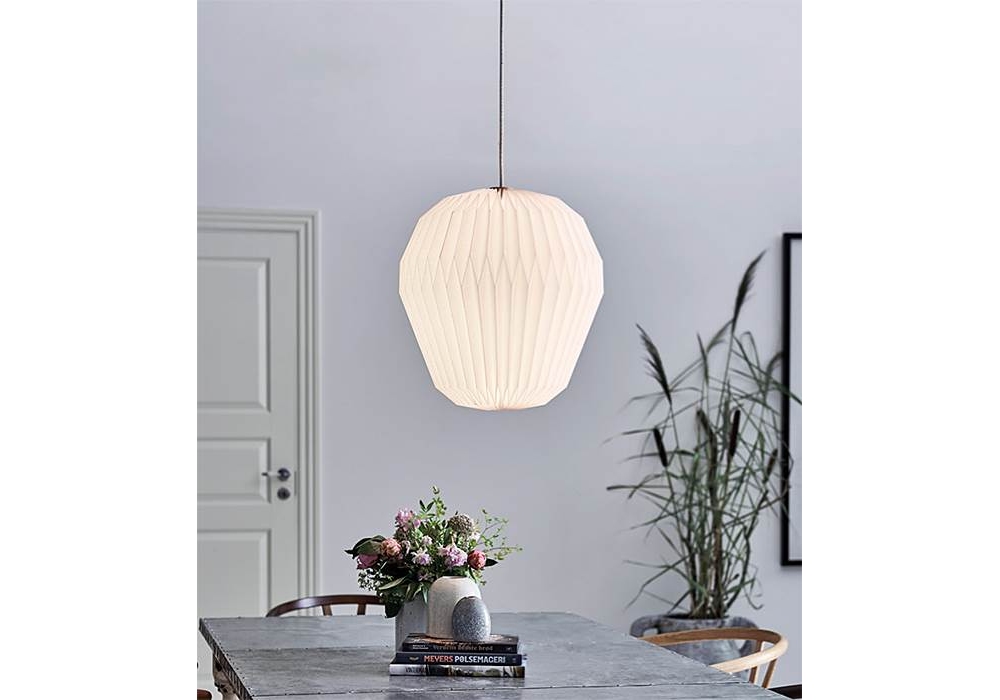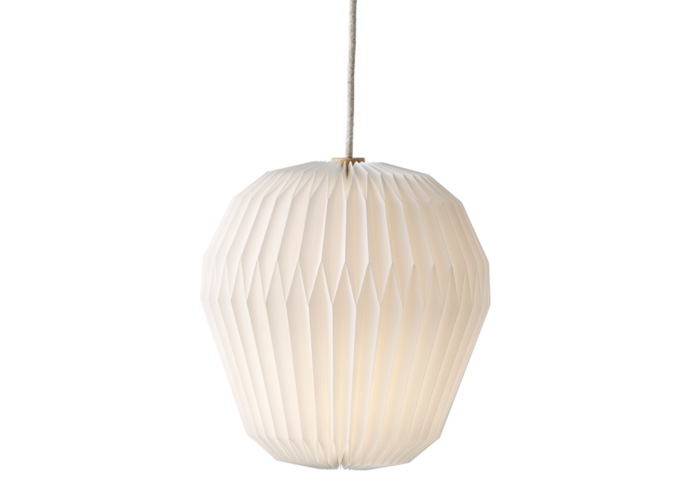 Le Bouquet conçu par Sinja Svarrer pour Le Klint est une lampe à suspension structurée par l'association du plastique et du bois. Le grand abat-jour est en matière plastique ou papier avec une surface aux plis réguliers et précis pour assurer une diffusion optimale de la lumière. Le boîtier de la lampe est en bois de chêne et utilise des sources lumineuses LED ou halogènes (non incluses). Le bouquet est disponible en différentes tailles.