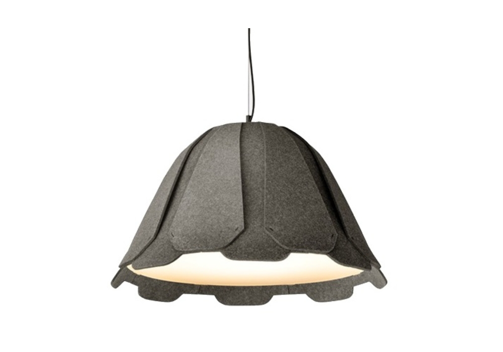 Tulip conçue par Rakumba est une lampe à suspension, feutre de polyester recyclé et diffuseur en acrylique satiné. La lampe est disponible en différentes finitions.