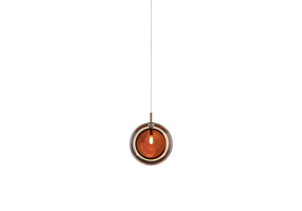 Lens conçue par Studio deFORM pour Bomma est une lampe à suspension réalisée avec des diffuseur en verre pressé peints à la main. Il est disponible en différentes finitions.