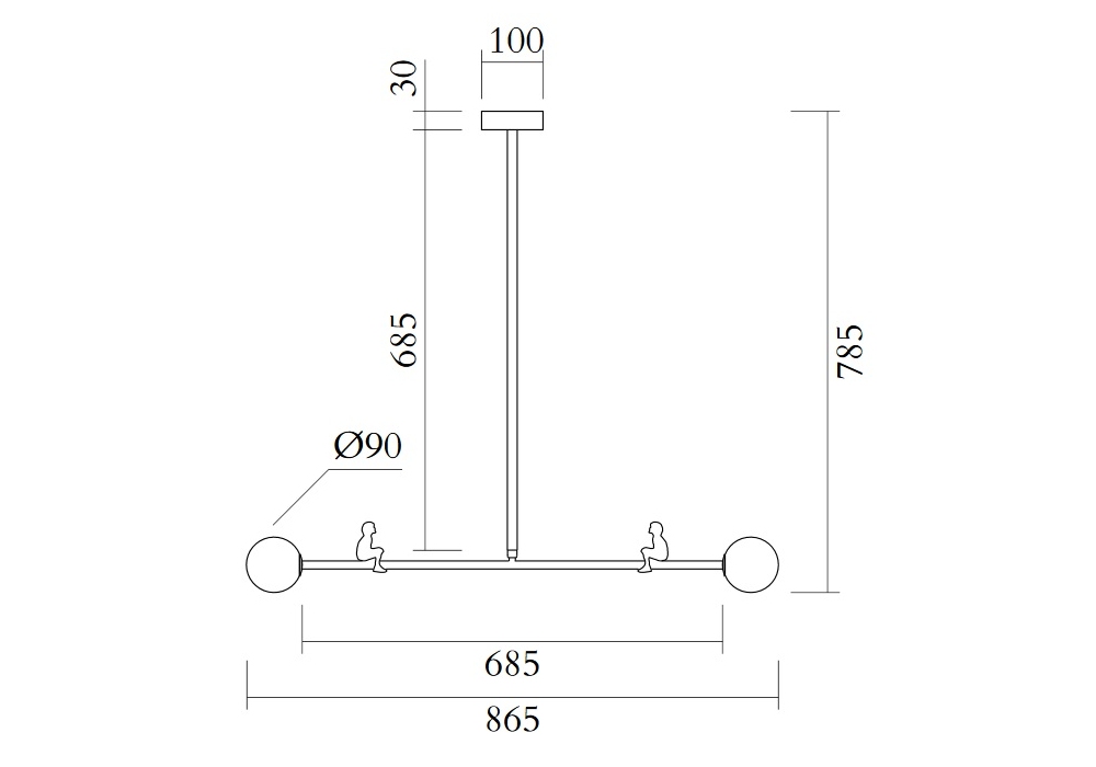 See Saw conçue par Atelier Areti est une lampe à suspension en laiton brossé et diffuseurs en verre blanc.
