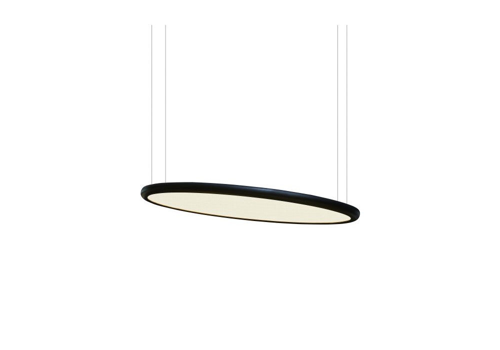 Bogotà conçue par Massimiliano Raggi pour Contardi est une lampe à suspension structurée par un anneau en bois ellipsoïdal laqué noir. L'abat-jour est en paille de Vienne ou en tissu et protège une source de lumière LED. Bogotà est disponible en différentes tailles, finitions et versions.