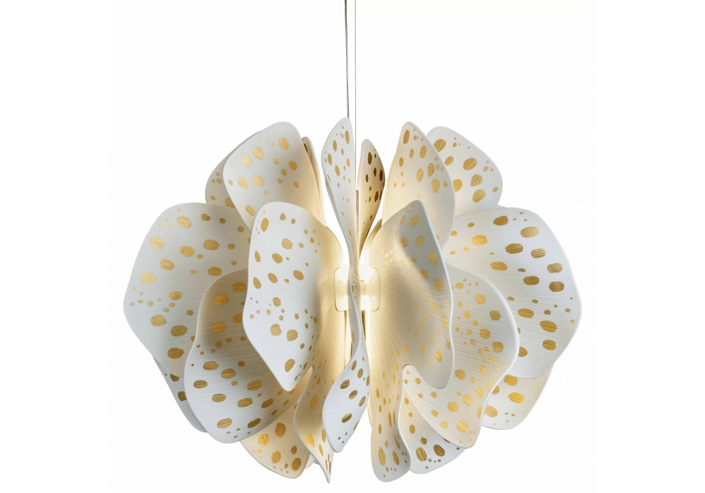 Nightbloom sculpté par Dept. Diseño y Decoración et conçu par Marcel Wanders pour Lladró est une lampe à suspension. Le corps diffusant est composé d'un ensemble de pétales en porcelaine faits à la main. Nightbloom est disponible en différentes finitions et tailles.