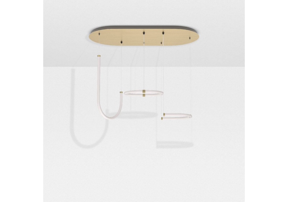 Unseen Triple conçu par Studiopepe pour Petite Friture est un système d'éclairage LED à 3 suspensions. Fabriqué en silicone, polycarbonate, laiton et acier peint.