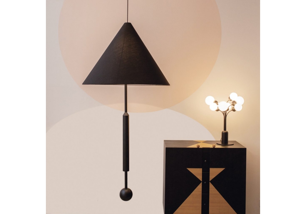 Object of Discussion conçue par Thomas Dariel pour Maison Dada est une lampe à suspension avec abat-jour en tissu et corps en métal enduit de poudre. Objet de discussion est disponible en différentes finitions.