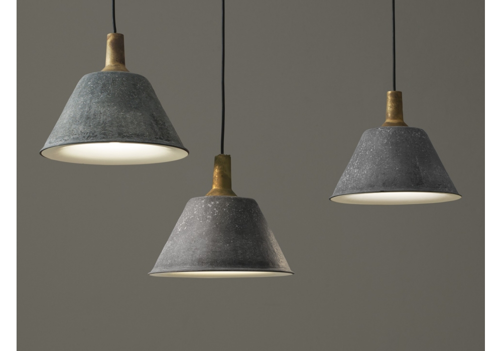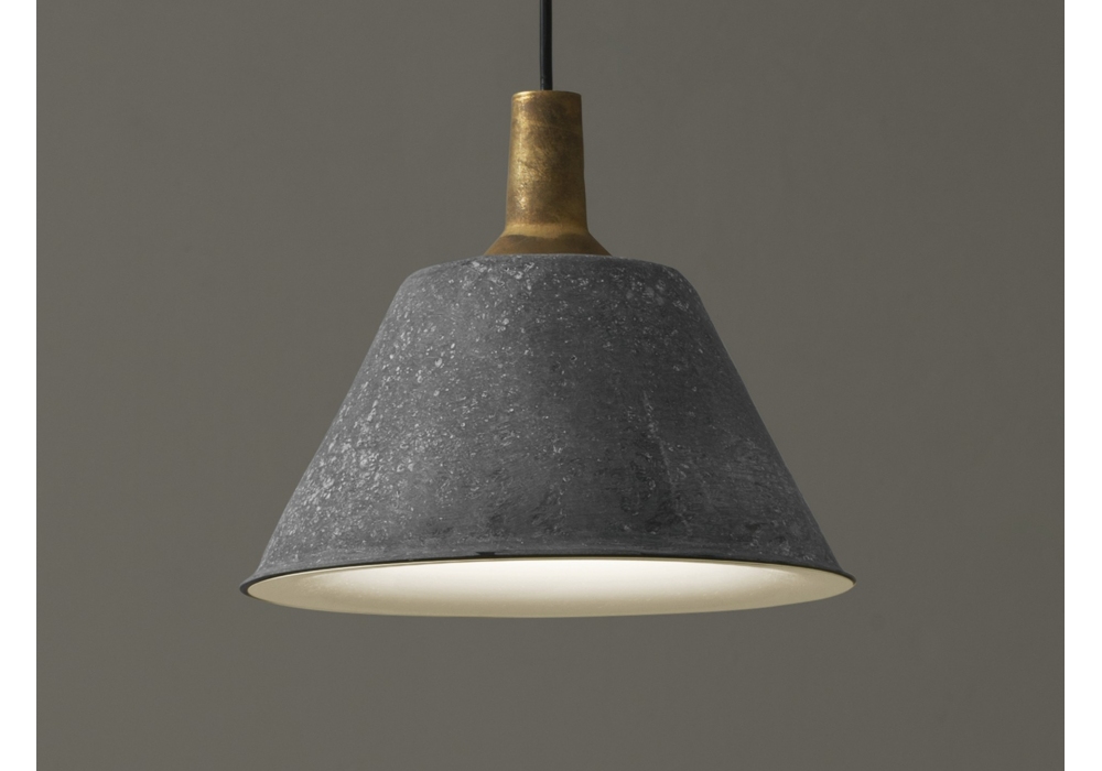 Sospeso conçue par Verter Turroni pour ImperfettoLab est une lampe à suspension en fibre de verre et laiton. Disponible en différentes finitions.