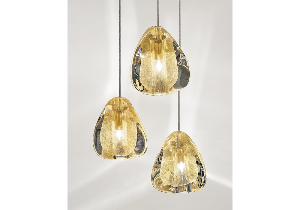 Mizu 3 conçue par Nicolas Terzani pour Terzani est une lampe à suspension avec structure circulaire en nickel peint ou brossé. Le diffuseur est en cristal et masque une source lumineuse LED ou halogène dimmable et en différentes versions. Mizu 3 est disponible en différentes finitions.