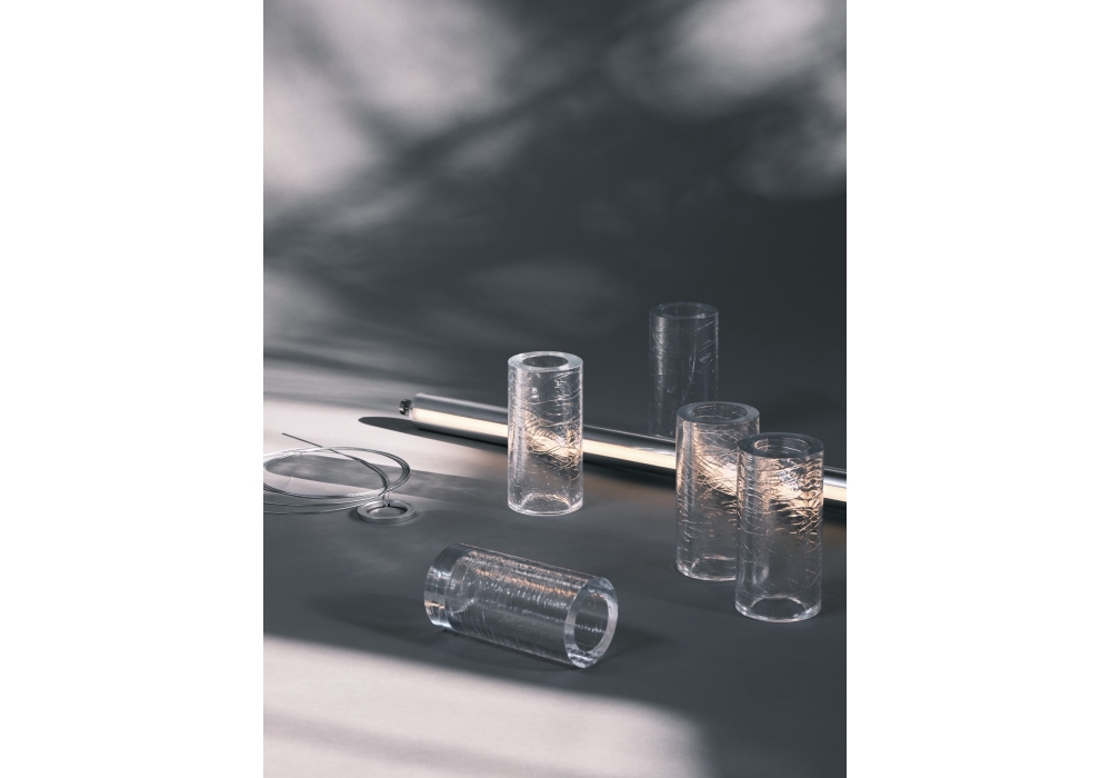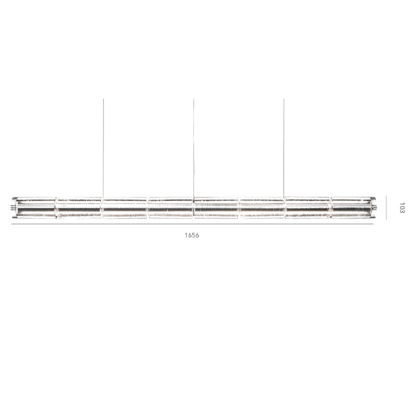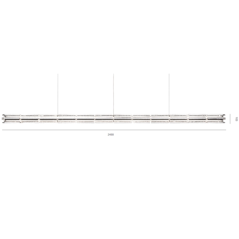 Luce Orizzontale conçue par Ronan & Erwan Bouroullec pour Flos est une suspension composée d'éléments cylindriques en verre avec un noyau interne en aluminium. La source lumineuse utilisée est une LED dimmable. Variateur d'intensité inclus (PUSH/DALI).