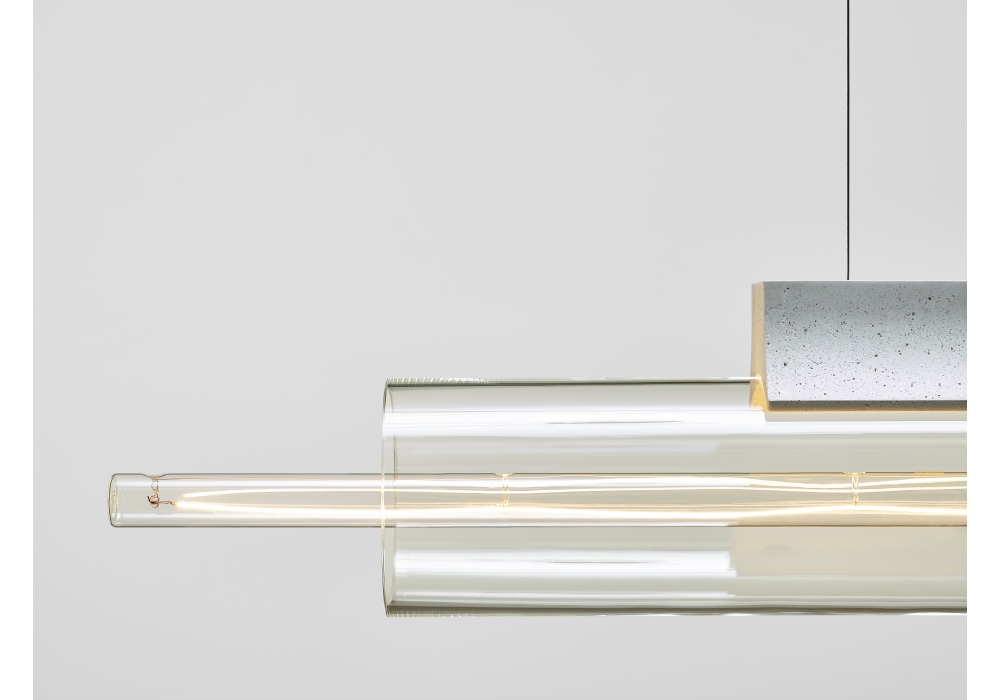 Overlay conçue par Lucie Koldova pour Brokis est une lampe à suspension avec structure portante en béton ultra-performant. Le diffuseur a une forme tubulaire en verre soufflé avec une surface brillante ou dépolie à l'acide et abrite une source de lumière LED . La superposition est disponible en différentes finitions.