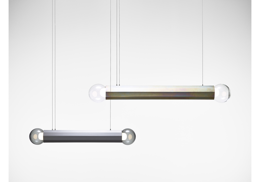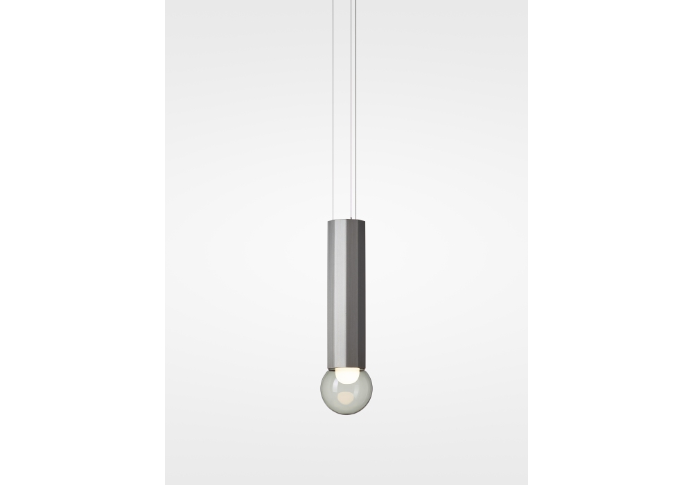 Prisma conçue par Lucie Koldova pour Brokis, est une suspension dont la structure est en acier galvanisé ou laqué brossé. Le diffuseur sphérique en verre soufflé à la surface brillante diffuse une source lumineuse LED à intensité variable disponible en différentes versions. Câble coaxial disponible en plusieurs finitions.
