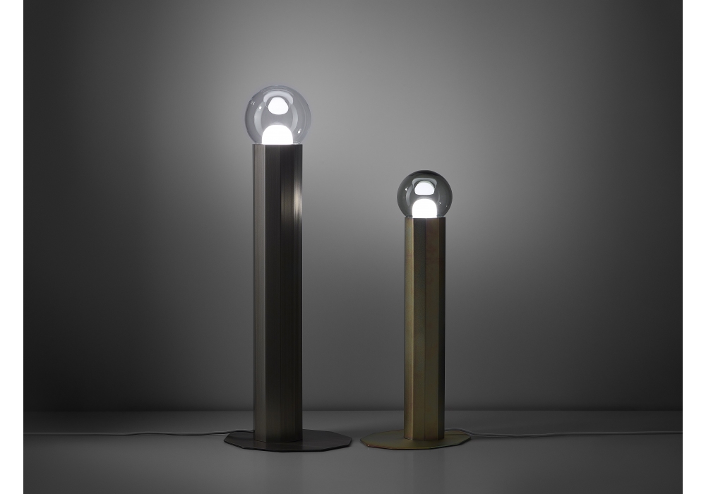 Prisma conçu par Lucie Koldova pour Brokis est un lampadaire doté d'une structure et d'un pied en acier galvanisé ou inoxydable. Le diffuseur sphérique en verre soufflé à la surface brillante diffuse une source lumineuse LED disponible en différentes versions. Le câble d'alimentation est gainé de fibre textile gris clair.