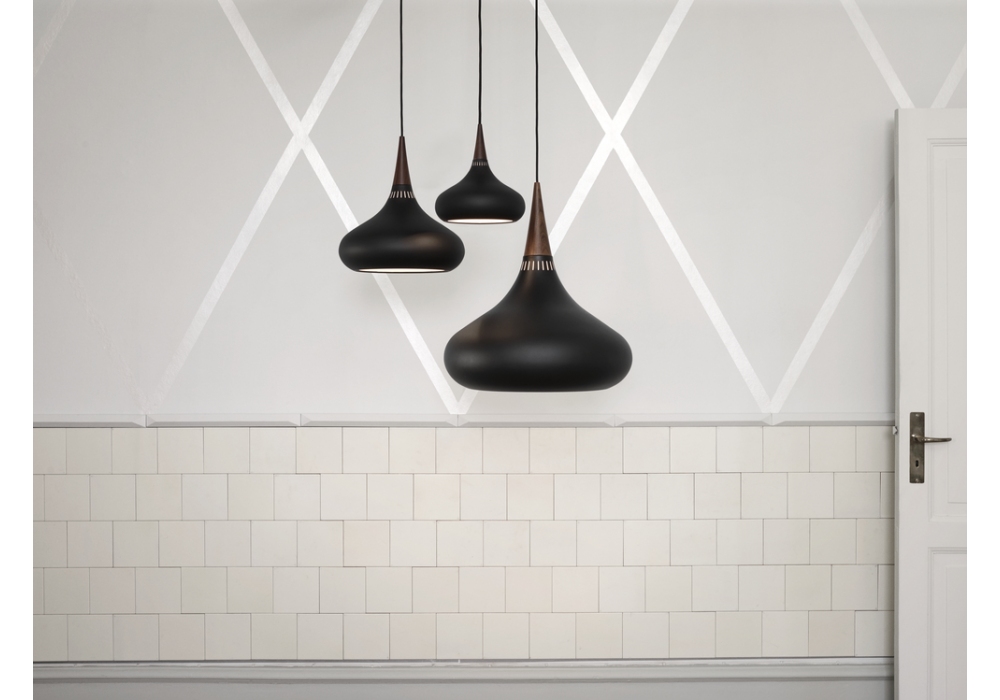Orient™ conçue par Jo Hammerborg pour Fritz Hansen est une suspension réalisée avec un abat-jour en aluminium ou en cuivre relié au câble par un joint délicat en chêne ou palissandre. Disponible en différentes finitions et dimensions.