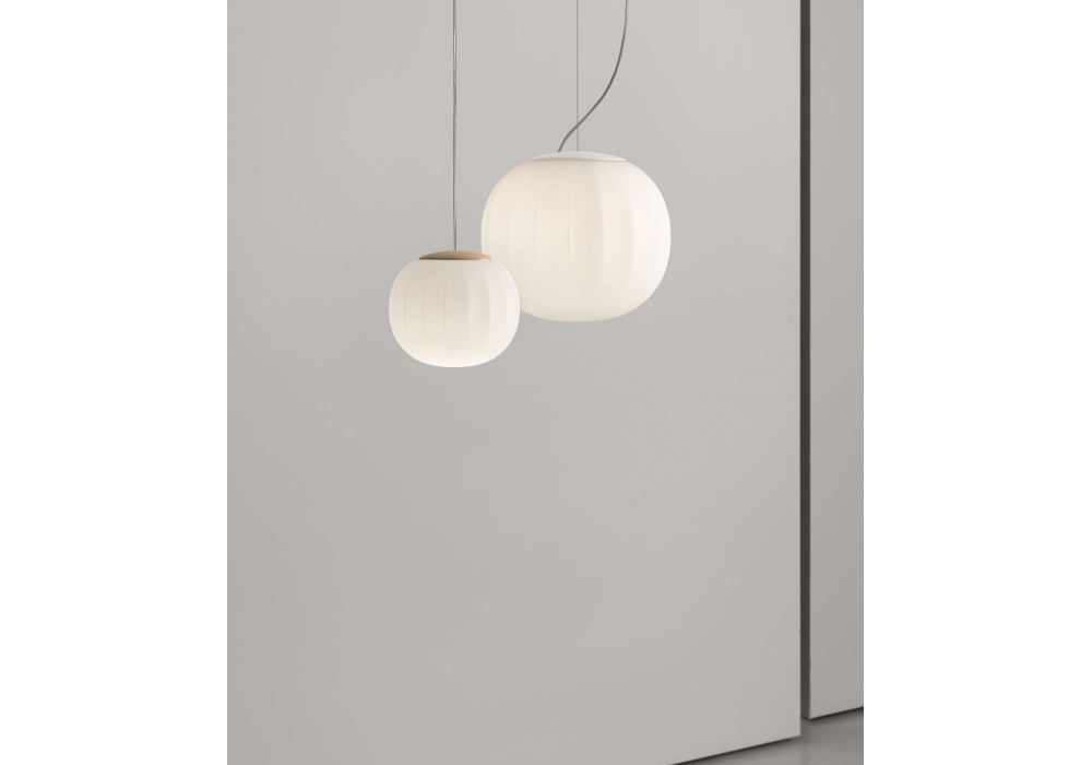 Lita conçue par David Dolcini pour Luceplan est une suspension en frêne massif ou en aluminium peint en différentes finitions. Diffuseur en verre soufflé blanc opale. Disponible en différents modèles.