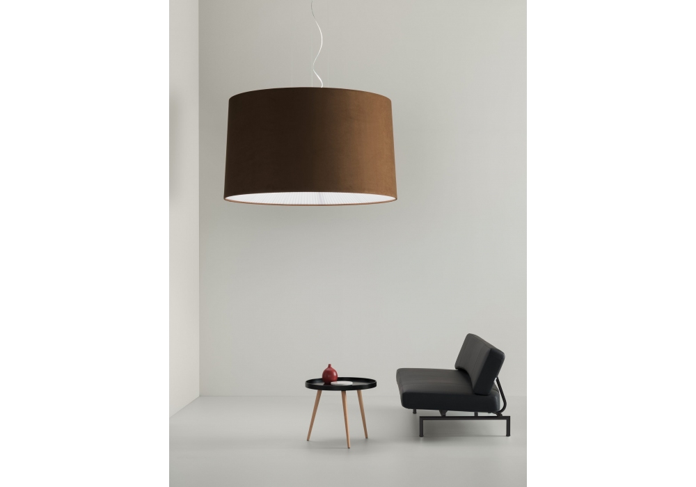 Velvet conçue par Manuel Vivian pour Axo Light est une lampe à suspension avec abat-jour en tissu ignifuge. Disponible en différentes finitions et tailles.