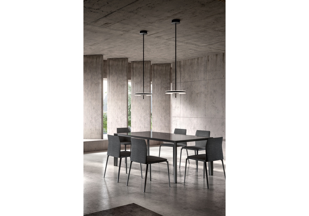Soul conçue par Massimo Tonetto pour Venicem est une lampe à suspension à lumière diffuse. Structure en laiton bruni clair ou noir mat. Diffuseurs en verre satiné transparent.