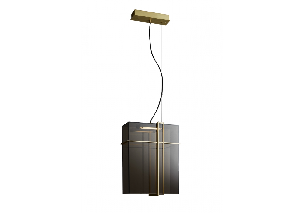 Utmost conçue par Massimo Tonetto pour Venicem est une lampe à suspension à lumière indirecte. Structure en laiton bruni clair avec diffuseur en verre transparent bronze.