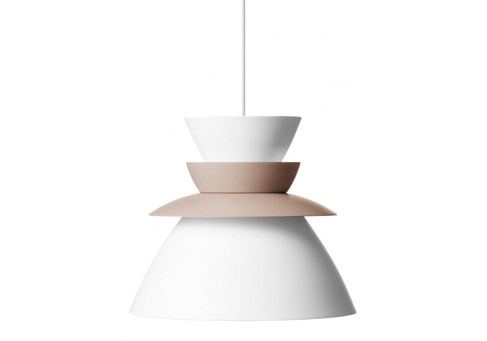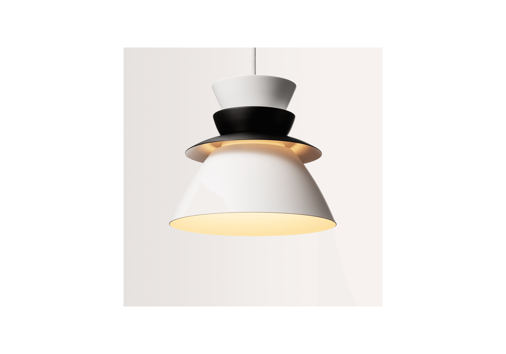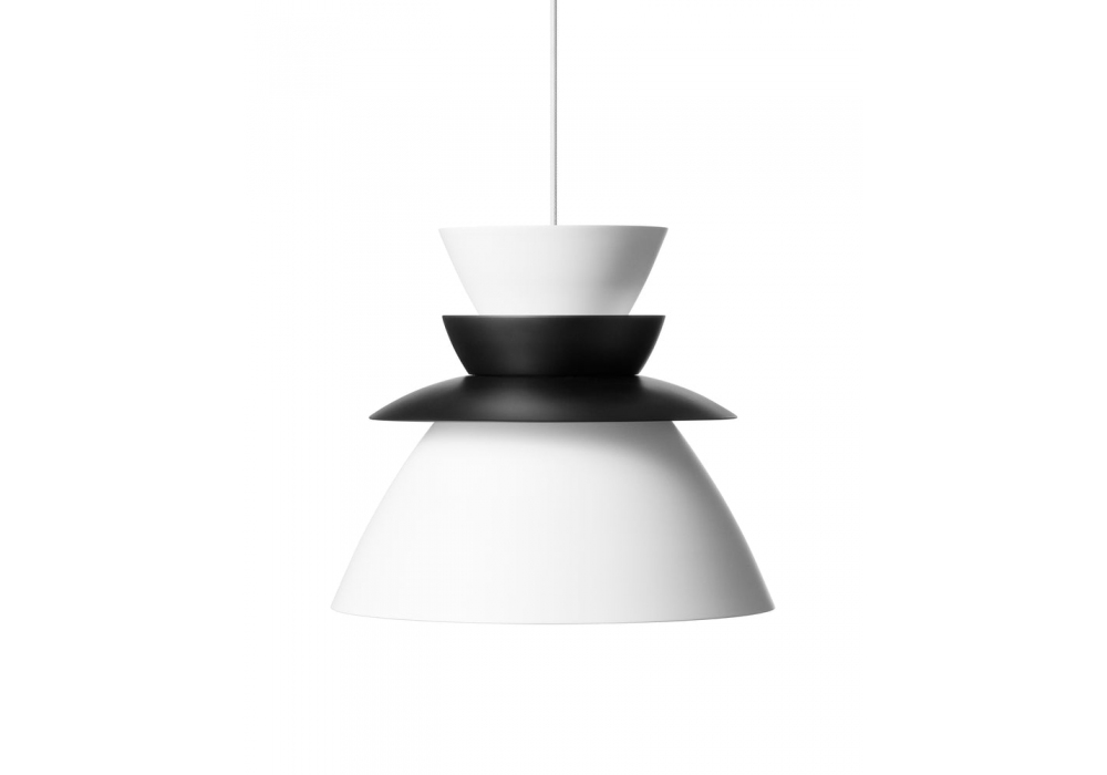 Sundowner conçue par Jørn Utzon pour Lyfa est une lampe à suspension. Disponible en différentes finitions et différentes tailles.