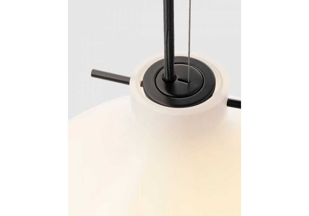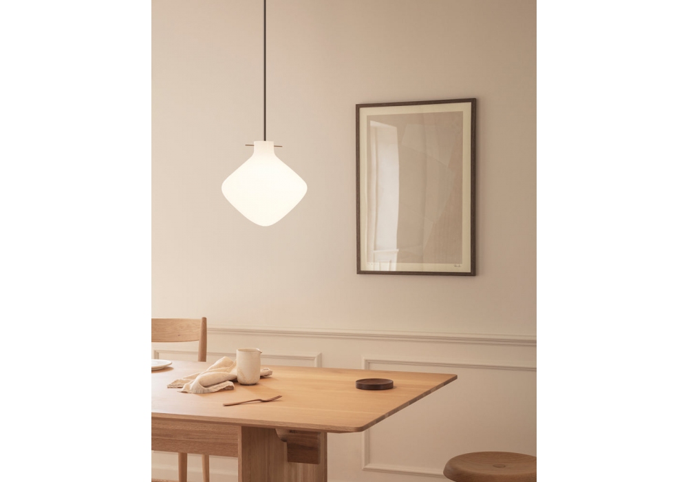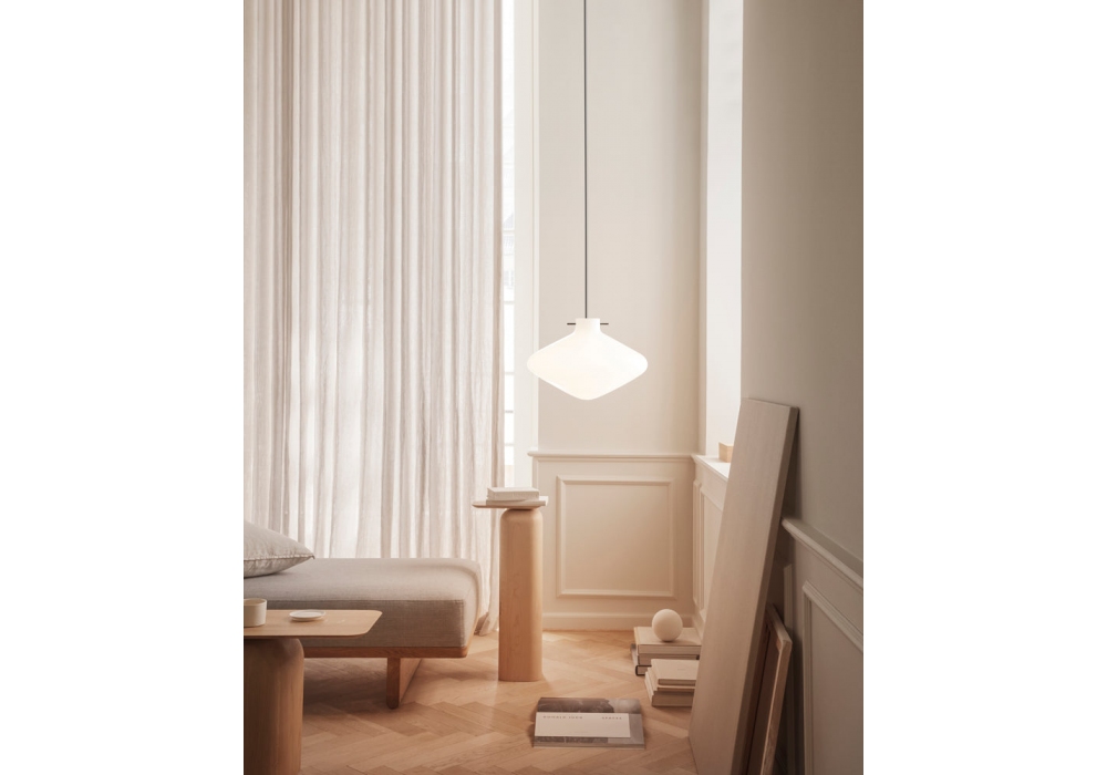 Repose conçue par Gam Fratesi pour Lyfa est une lampe à suspension en verre opale. Disponible en différentes finitions et différentes tailles.