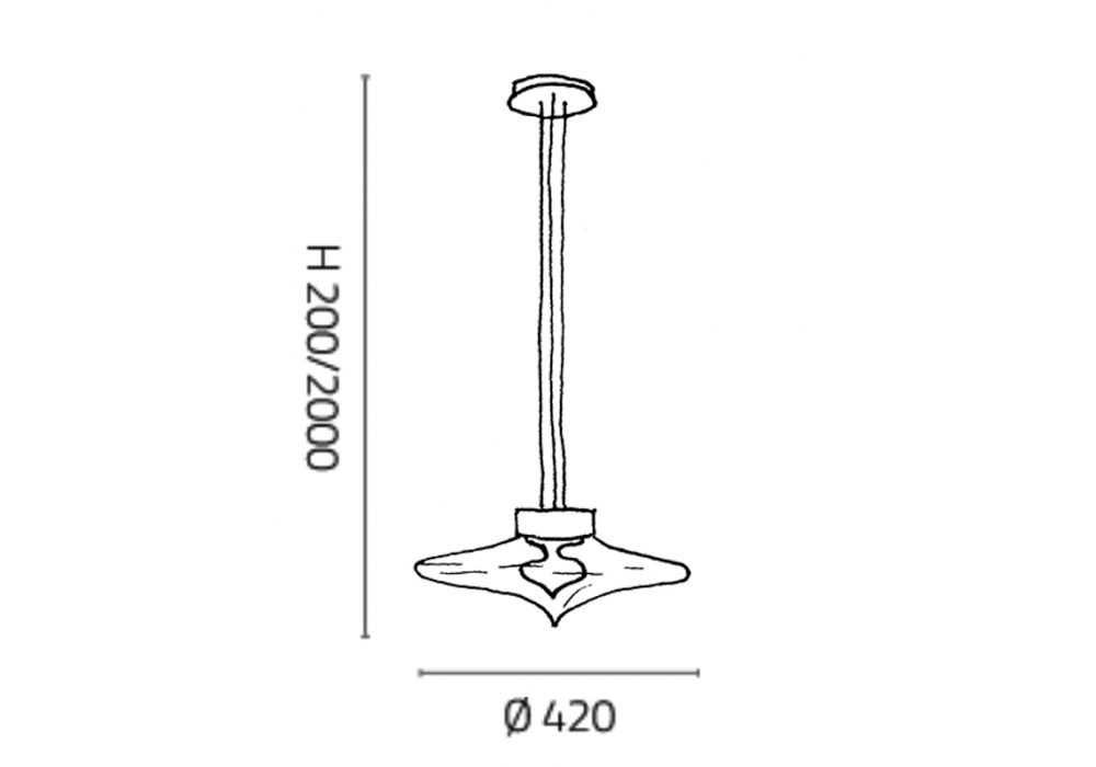 Desideria conçue par Domenico Rinaldi pour Fisionarte est une lampe à suspension avec structure en métal en différentes finitions. Le diffuseur et l'abat-jour sont en verre borosilicaté avec une finition opaque ou transparente et abritent une source de lumière LED dimmable.