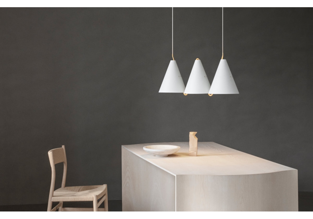 Mosaik Sidebyside III conçu par Bent Karlby pour Lyfa est une lampe à suspension en métal et laiton. Disponible en différentes finitions.