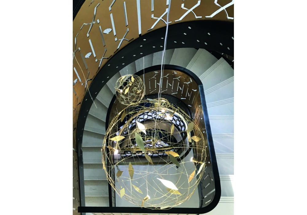 Tontine conçue par Ombre Portée est une suspension réalisée en laiton brossé et ciré. Pavillon en laiton. Disponible en différentes dimensions.