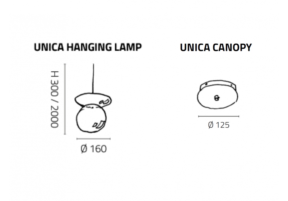 Unica conçue et produite par Fisionarte Studio est une lampe à suspension avec structure en métal chromé noir et verre pyrex. Le diffuseur a une forme sphérique en verre Pyrex transparent et une forme elliptique en couleur bronze réunis en un seul corps. La source lumineuse adoptée est avec une connexion LED de type G4.