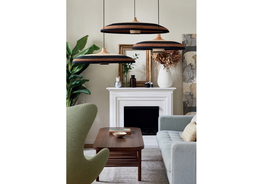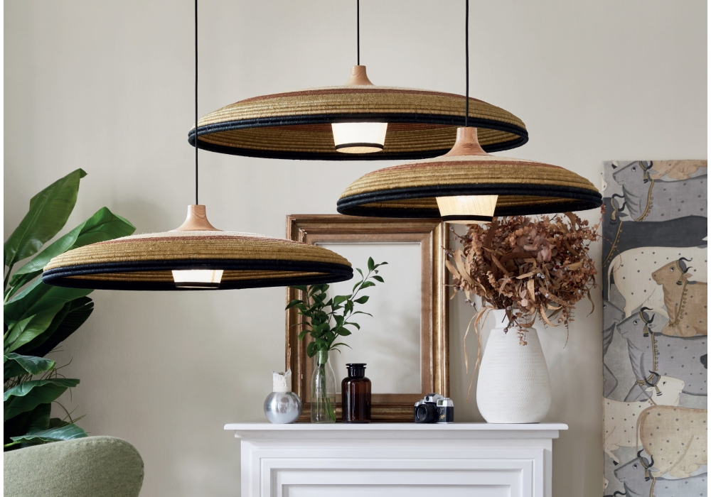 Grass conçue par Jette Scheib pour Forestier est une suspension en bois recouvert d'un cordon textile en velours et coton. Disponible en différentes finitions et dimensions.