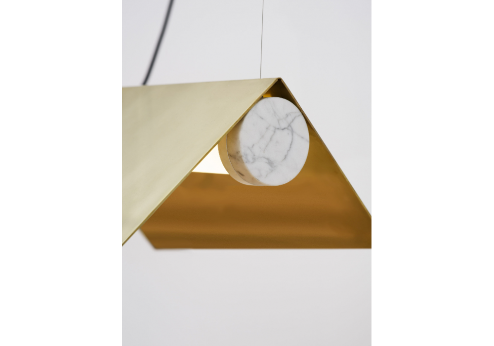 Clark 02 conçue et produite par Lambert & Fils est une lampe à suspension avec abat-jour en laiton poli ou en aluminium thermolaqué et diffuseur en polycarbonate lait avec cordon en polyester. Disponible en différentes tailles et finitions.