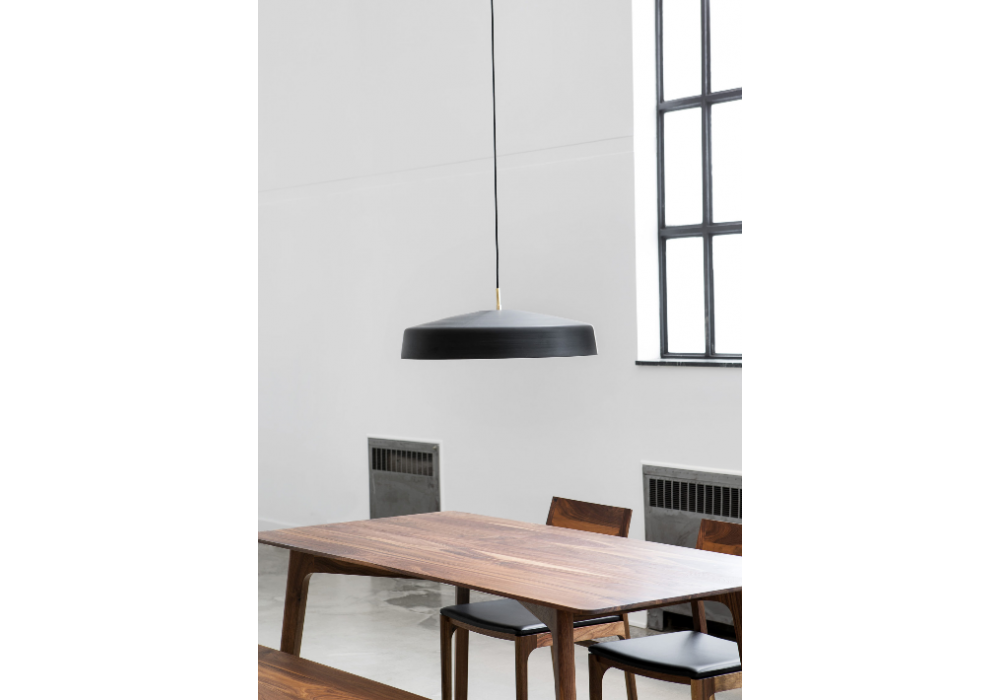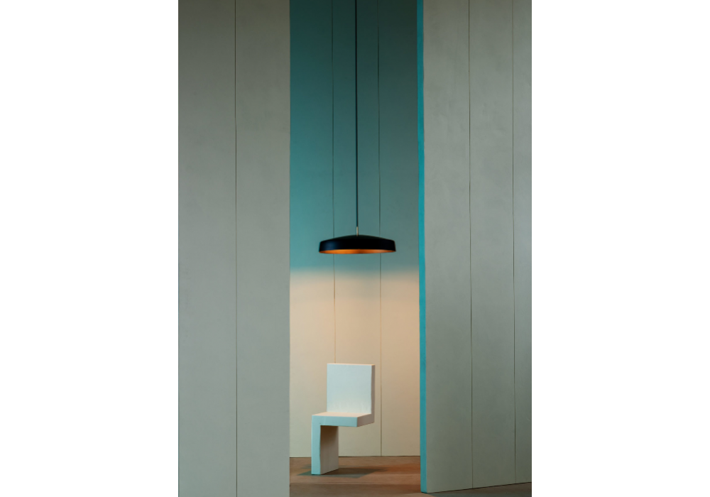 Cliff 05 conçue et produite par Lambert & Fils est une lampe à suspension avec abat-jour en aluminium thermolaqué, diffuseur en verre satiné et câble en polyester. Disponible en différentes finitions.