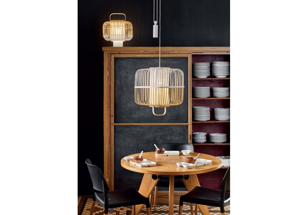 Bamboo Square conçue par Arik Levy pour Forestier est une suspension carrée en bambou, coton et cordon en tissu. Disponible en différentes dimensions et finitions.