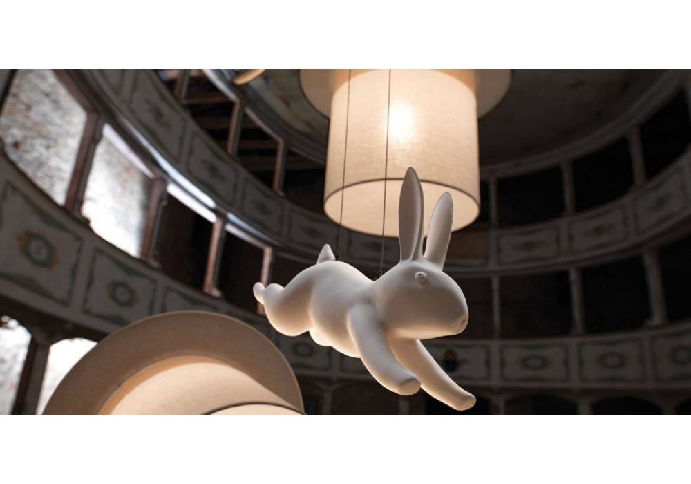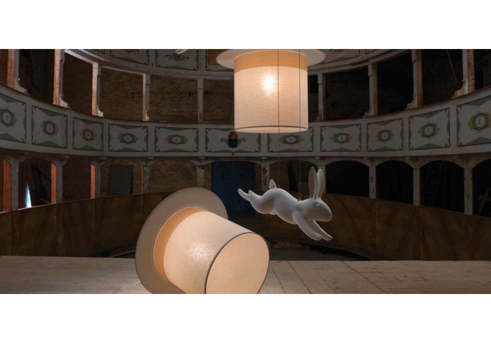 Wow conçue par Matteo Ugolini est une lampe à suspension en lin blanc avec rosace en métal blanc brillant. Usage interne. Ampoule non incluse.