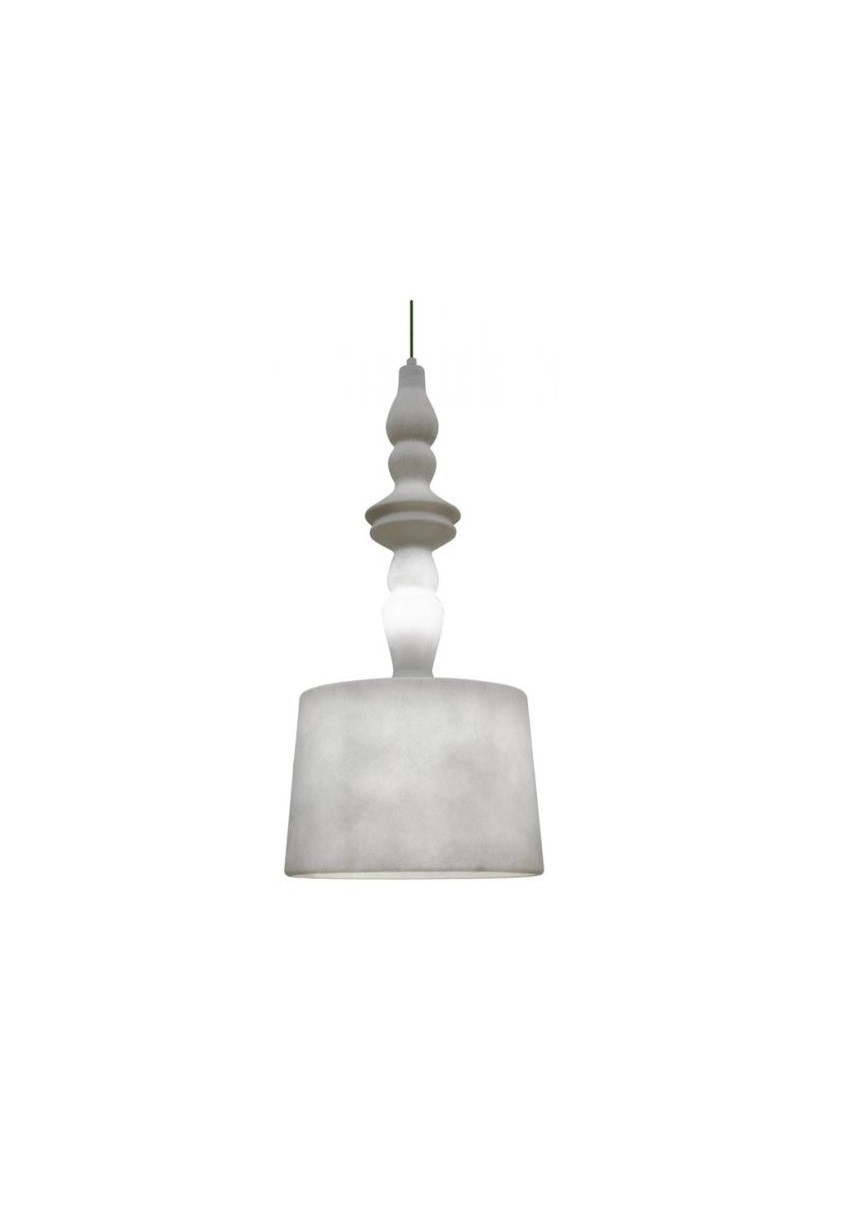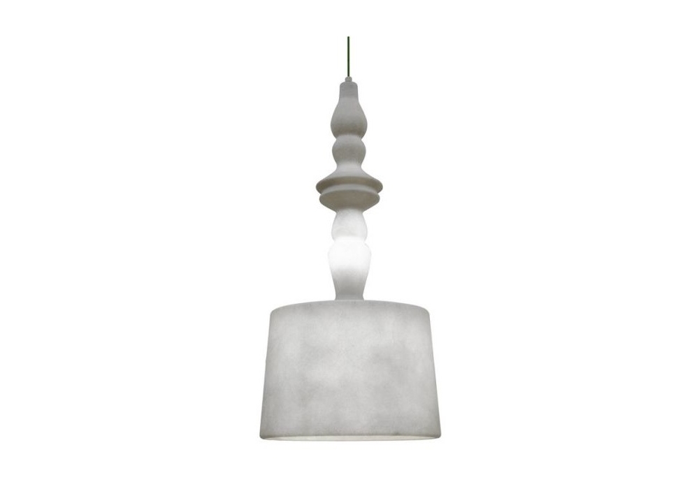 Alibabig Outdoor conçue par Matteo Ugolini pour Karman est une suspension blanche en fibre de verre avec un plafond en métal blanc mat. Lampe à suspension équipée de 2 LED.