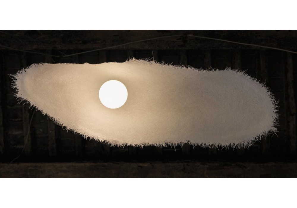 Moby Dick Outdoor conçue par Matteo Ugolini pour Karman est une suspension en fibre de verre blanche disponible en 2 dimensions.