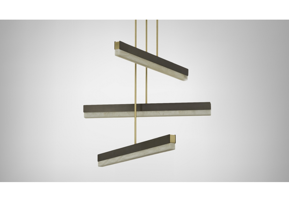 Artés Collective conçue par CTO Lighting est une suspension LED réalisée en bronze avec des détails en laiton satiné ou entièrement en laiton satiné et abat-jour en albâtre poli. Disponible en différents modèles.