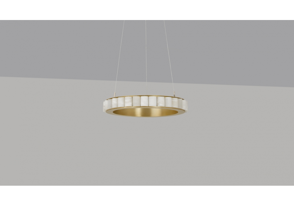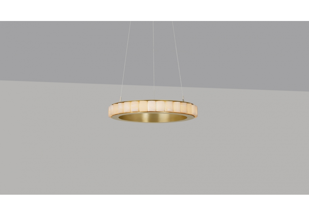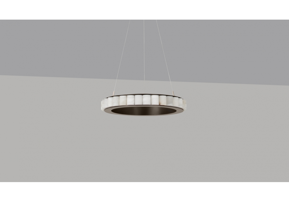 Avalon conçue par CTO Lighting est une suspension LED en bronze ou laiton satiné, détails en albâtre. Câble en acier inoxydable. Disponible en 2 dimensions.