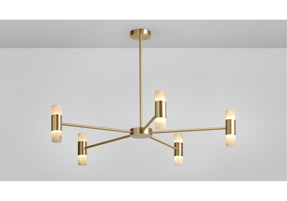 Roma conçue par CTO Lighting est une suspension LED en bronze ou laiton satiné, diffuseurs en albâtre.