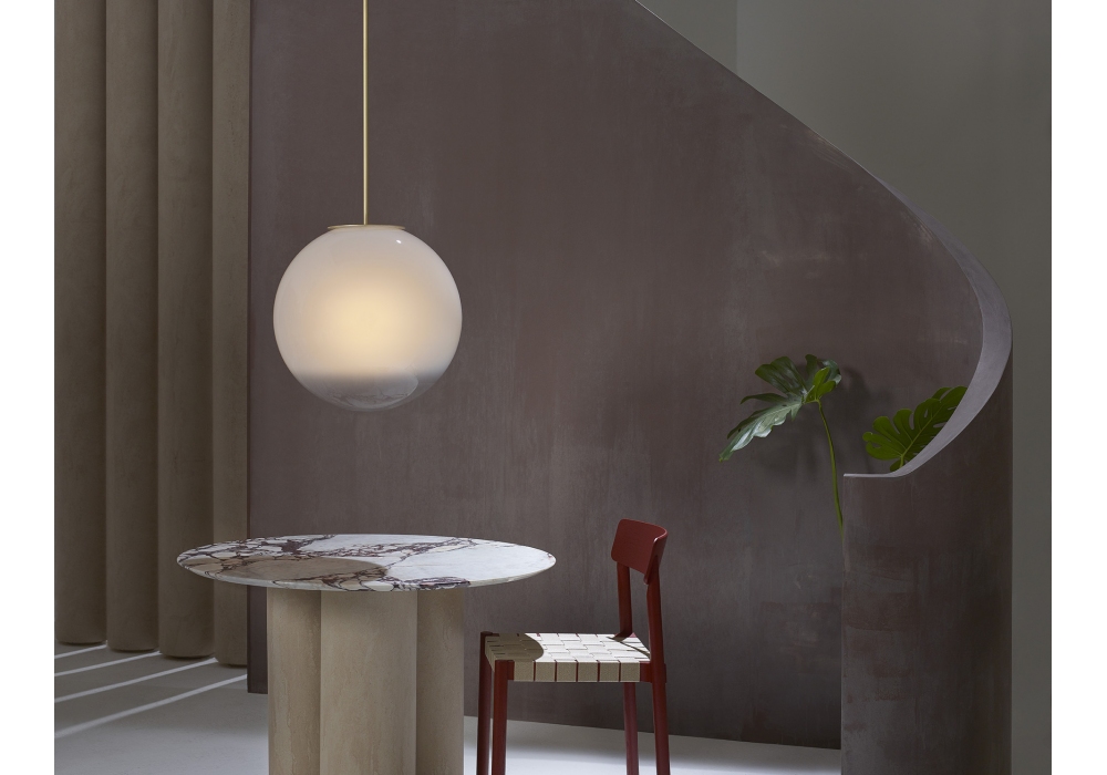 Skye conçue par CTO Lighting est une suspension en bronze ou laiton satiné et diffuseurs en verre opale. Disponible en 3 dimensions.