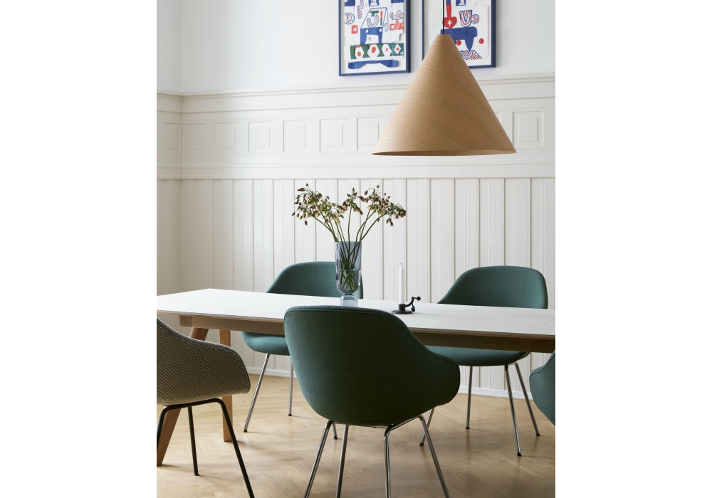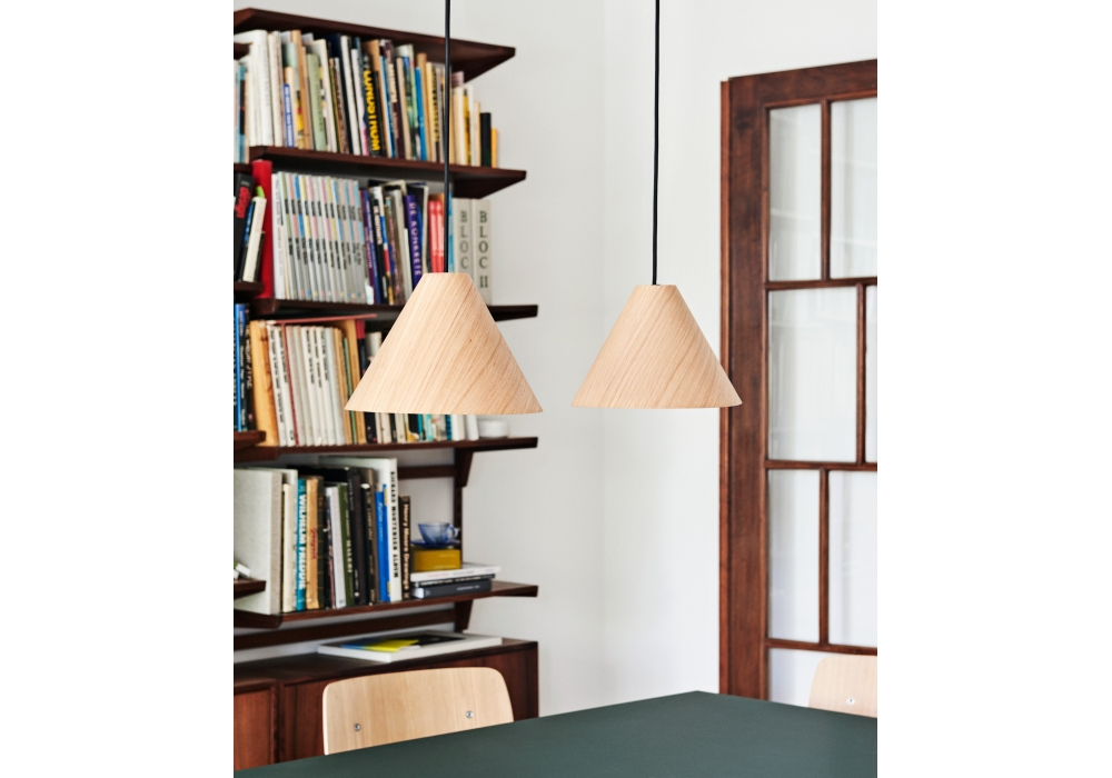 30 Degrees conçue par Johan van Hengel pour Hay est une suspension avec abat-jour en placage de chêne laminé. Disponible en différentes dimensions.