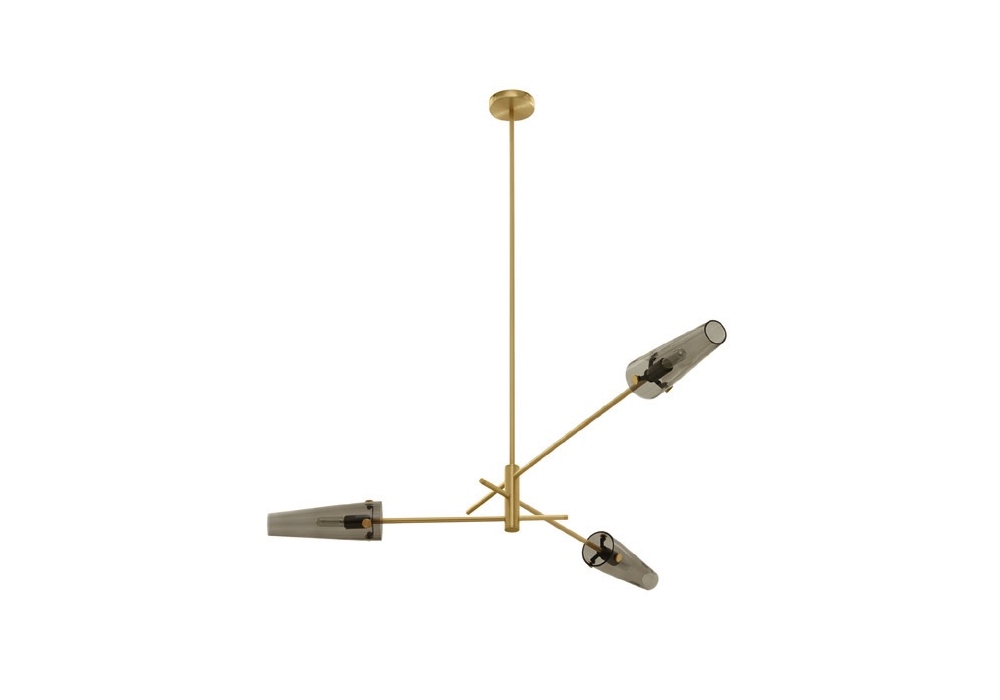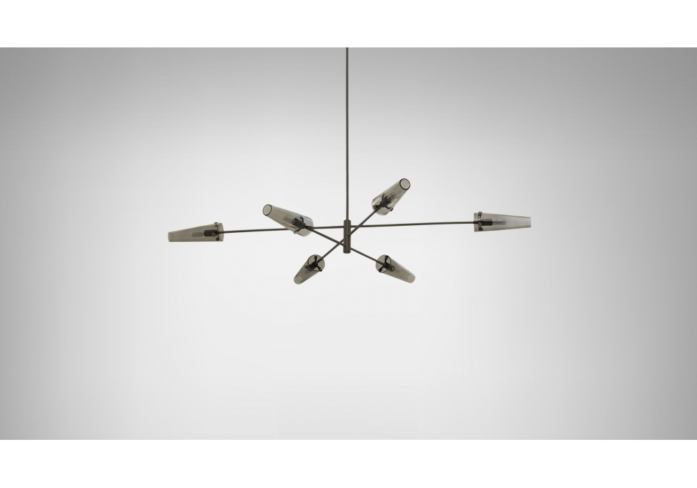 Axis conçue par CTO Lighting est une suspension réalisée avec une structure en bronze ou en laiton satiné et des diffuseurs en rosace et en verre fumé. Disponible en 2 dimensions.