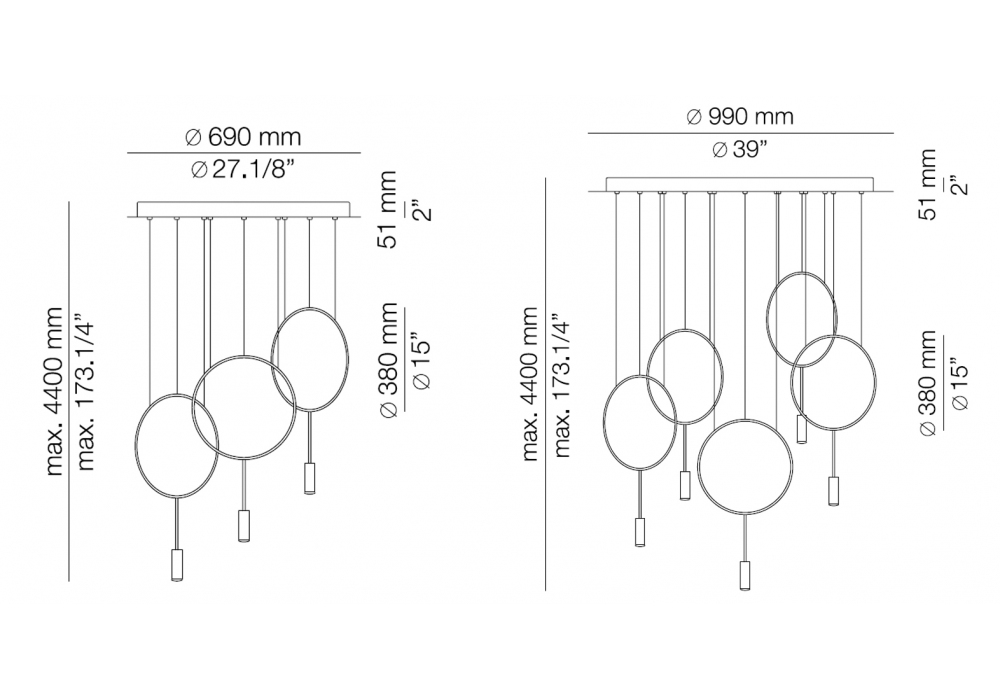 | Dimensions | Ø 69 x H 440 cm; Ø 99 x H 440 cm. |