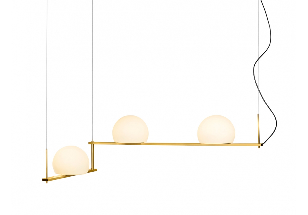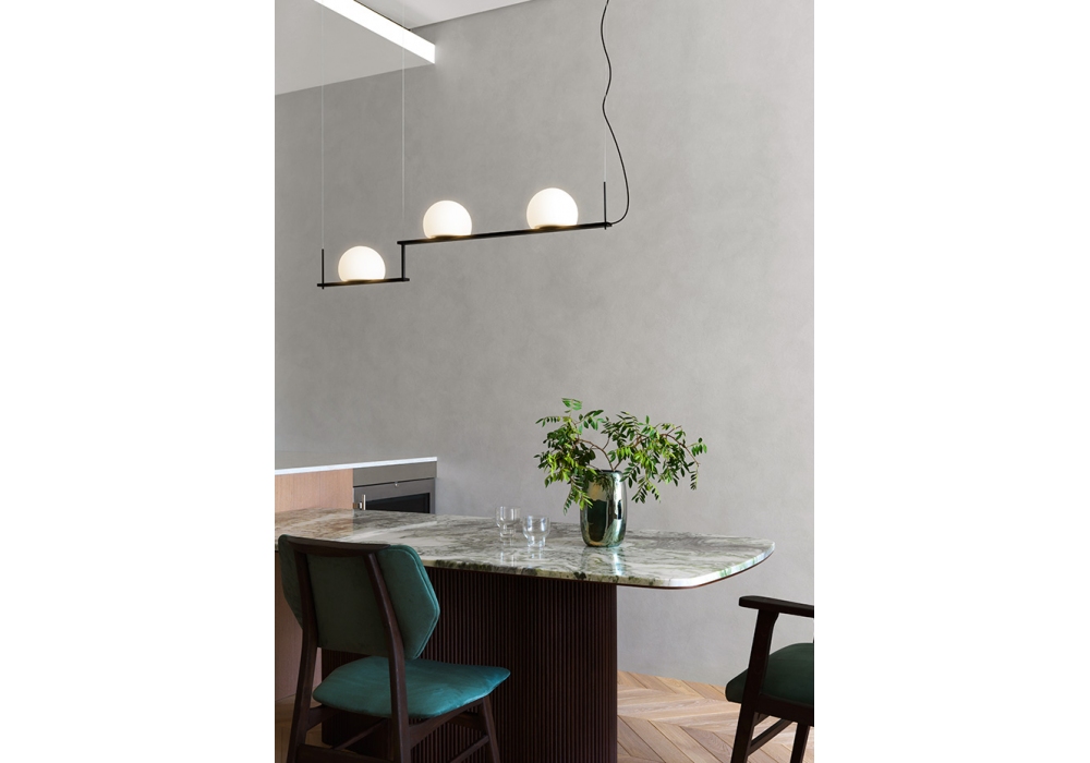 Circ conçue par Nahtrang Studio pour Estiluz est une lampe à suspension structurée par deux bras articulés en métal quadrangulaire peint. Les abat-jour sont semi-sphériques en verre et abritent une source lumineuse de type LED avec un système de gradation triac. Circ est disponible en différentes finitions de structure et de rosette.