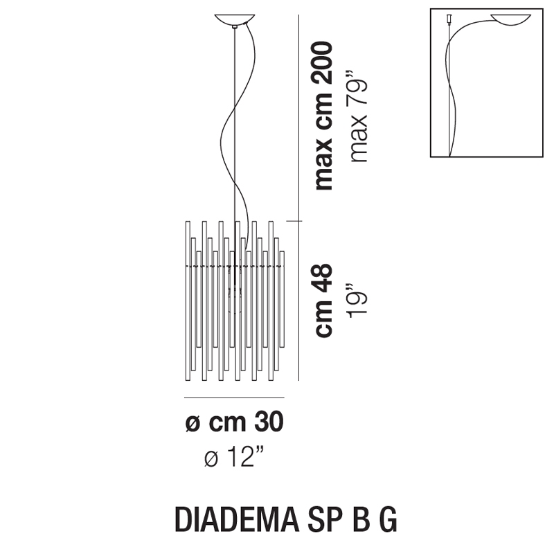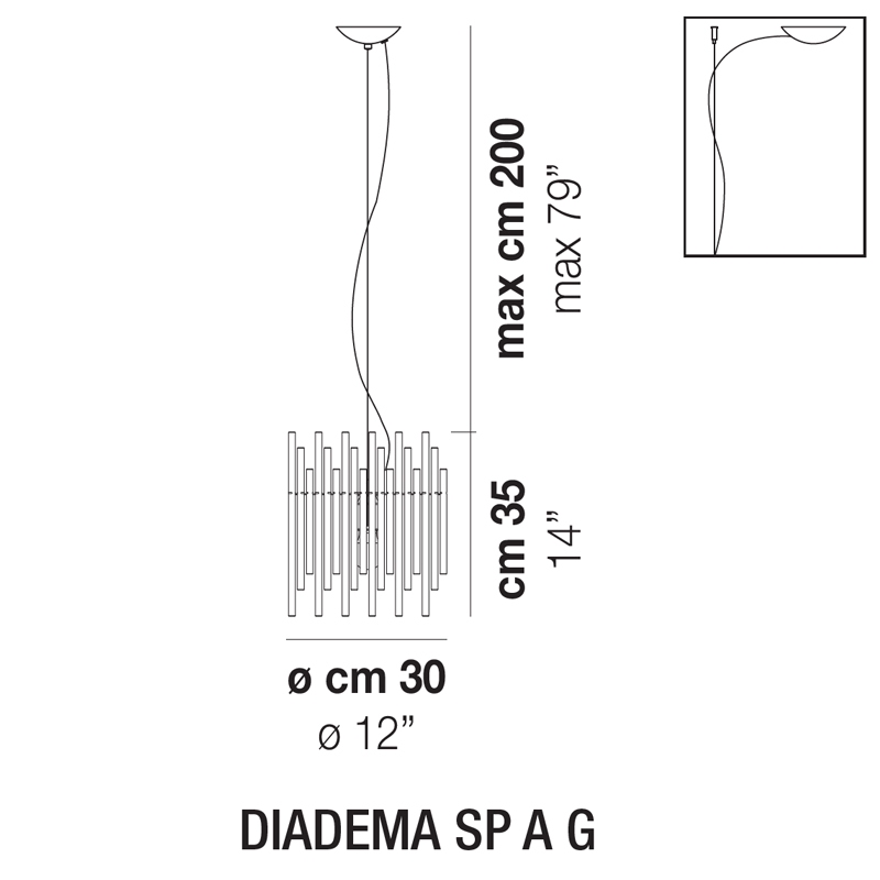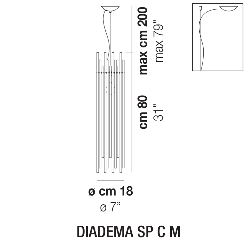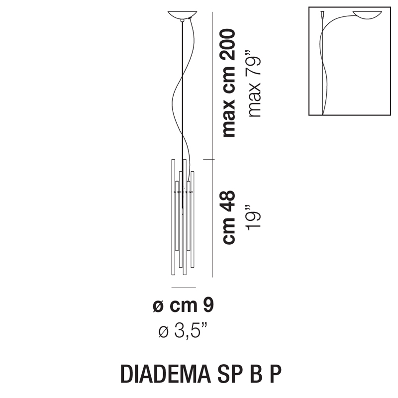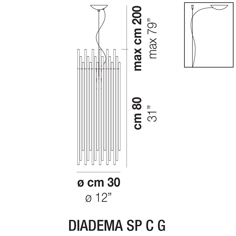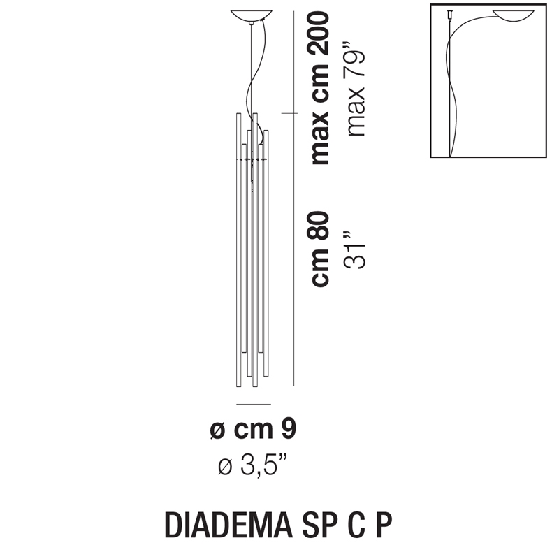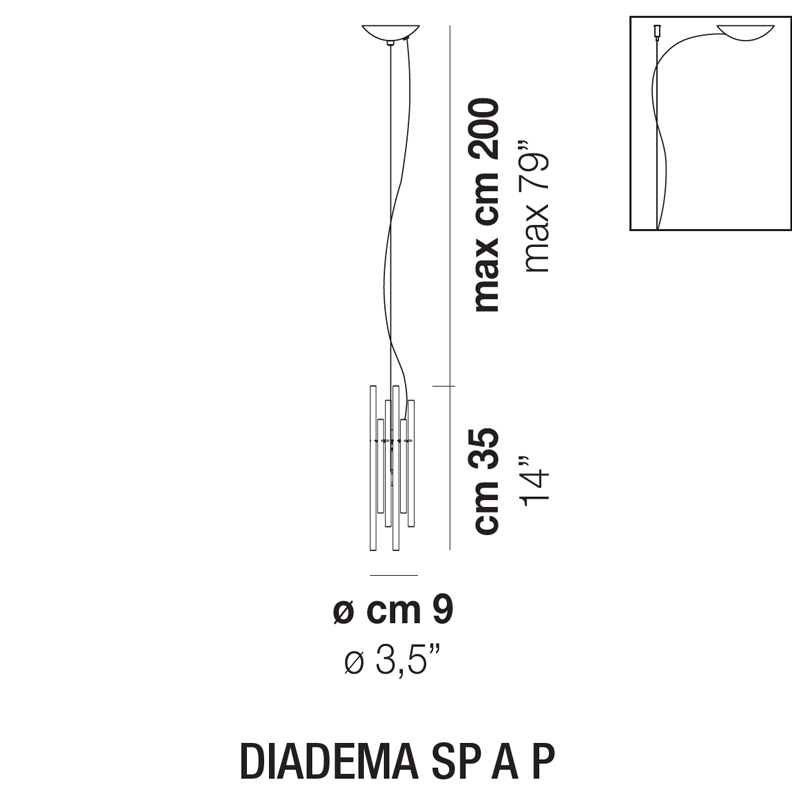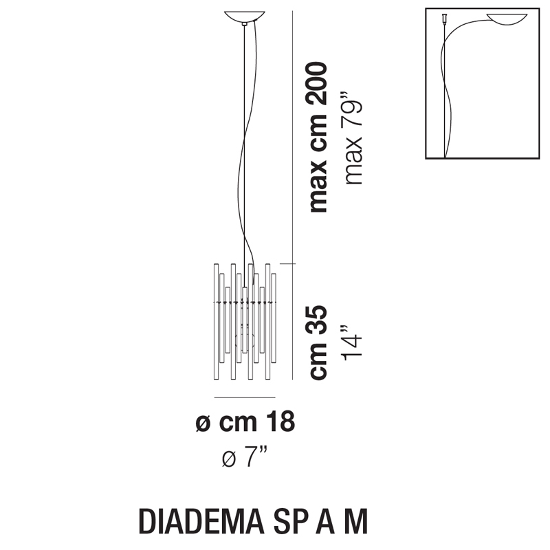 Diadema LED conçue par Romani Saccani Architetti Associati pour Vistosi est une lampe à suspension avec structure portante en métal en finition bronze satiné ou chrome poli. Le diffuseur est fait de cristal structuré par diverses applications tubulaires et protège une source lumineuse LED dimmable dans diverses gradations de lumière. Diadema LED est disponible en différents modèles.