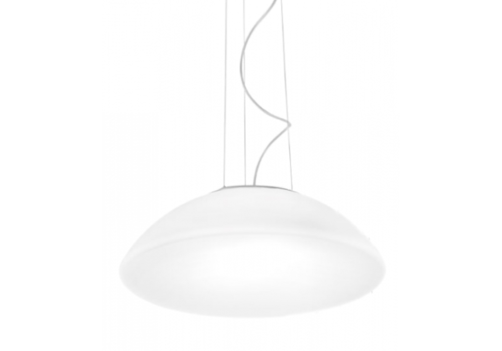 Infinita LED conçue par Toso, Noti Massari & Associati pour Vistosi est une lampe à suspension avec structure portante en métal blanc mat. Le diffuseur est en verre de forme circulaire dans une finition blanc/satiné et adopte une source lumineuse LED dimmable dans différentes gradations de lumière. Infinita LED est disponible en différents modèles.